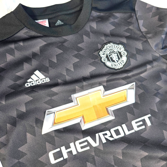Excellent ConditionManchester United away football shirt from the 2017/18 season by adidas, featuring the dark grey and black geometric design with Chevrolet sponsor and embroidered club crest. A popular modern United away shirt, ideal for match days, training or casual wear. ✔ Excellent Condition ✔ Size: 11–12 Years ✔ Genuine...