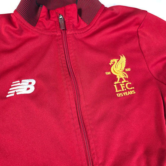 Excellent Condition Liverpool FC 2017/18 Track Jacket by New Balance. Features full zip front, ribbed collar and cuffs, with gold LFC crest celebrating 125 years (1892–2017) and New Balance branding on a classic red design. Excellent condition Boys Size 9–10 Years Genuine New Balance Liverpool jacket Ideal for training, football,...