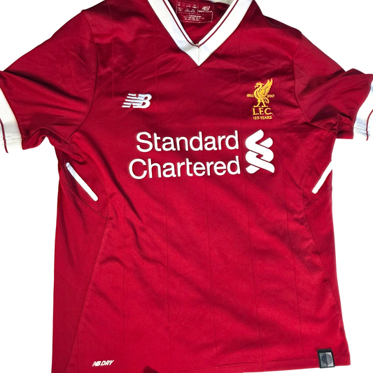 Good condition – very faint mark on the shirt (see photos)Liverpool 2017/18 Home Football Kit by New Balance. Includes red home shirt and matching shorts with white detailing, Standard Chartered sponsor and Liverpool FC crest. Good condition – very faint mark on the shirt (see photos) Boys 9-10 Years Genuine...