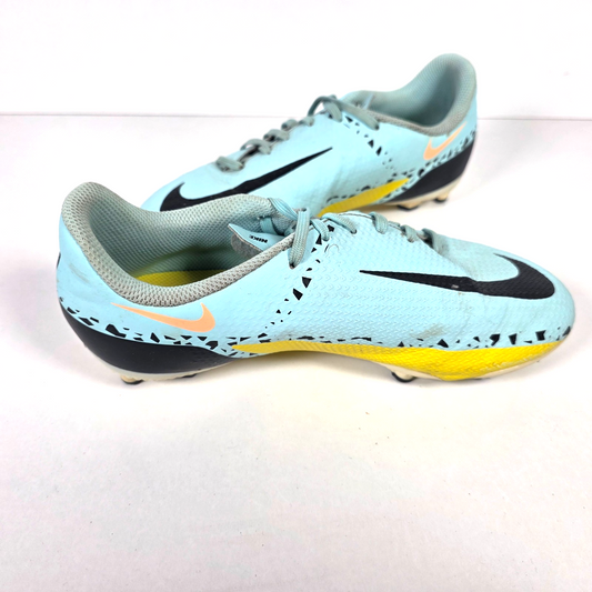 Great condition – signs of use and light wear (see photos) Nike Phantom GT2 Academy FG Football Boots Moulded Studs Boys UK Size 3. Eye-catching design in light blue with yellow and black detailing, built for control and precision on firm ground pitches. Great condition – signs of use and...