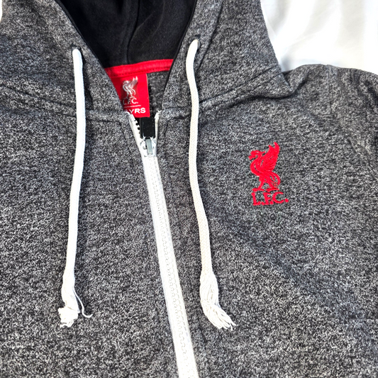 Excellent ConditionLiverpool FC Full Zip Hoodie with embroidered LFC crest on chest. Stylish grey marl design with contrast black lining, white zip and drawstrings, perfect for everyday wear or matchday support. Excellent condition Boys Size 5–6 Years Genuine Liverpool FC hoodie Ideal for casual wear, school or keeping warm while...