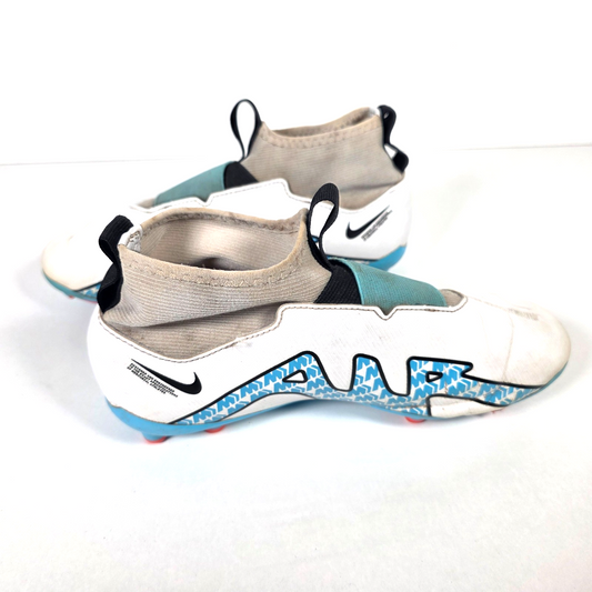 Good condition – visible marks and signs of use (see photos)Nike Zoom Mercurial Superfly 9 Academy Football Boots FG Moulded Studs UK Size 4. Clean white design with blue detailing and laceless strap system, built for speed and control on firm ground pitches. Good condition – visible marks and signs...