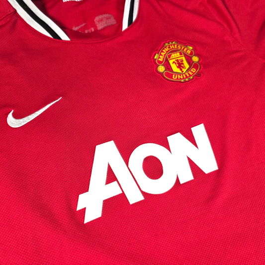Good - couple of pulls and sizing has fadedManchester United home football shirt from the 2011/12 season by Nike, featuring the classic red design with AON sponsor, embroidered club crest and Nike swoosh. A great retro United shirt, ideal for match days, training or casual wear. ✔ Good Condition –...
