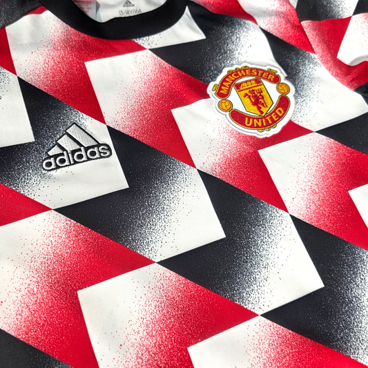 Excellent ConditionManchester United pre match shirt from the 2022 to 2023 season by adidas, featuring the bold red, white and black geometric design with embroidered club crest and adidas branding. A standout warm up jersey ideal for training, match build up or everyday wear. ✔ Excellent Condition ✔ Size: 13...
