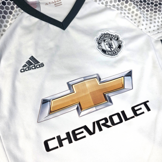 Excellent ConditionManchester United third shirt from the 2016 to 2017 season by adidas, featuring the clean white design with grey hex pattern sleeves, Chevrolet sponsor and embroidered club crest. A stylish United jersey ideal for match days, training or everyday wear. ✔ Excellent Condition ✔ Size: 11 to 12 Years...