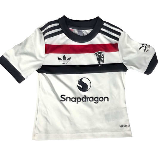 Excellent ConditionManchester United third football kit by adidas from the 2024/25 season, featuring the white shirt with red and black chest stripe, Snapdragon sponsor, adidas trefoil and club crest, paired with matching black shorts. A modern and stylish kit ideal for football, training or casual wear. ✔ Excellent Condition ✔...
