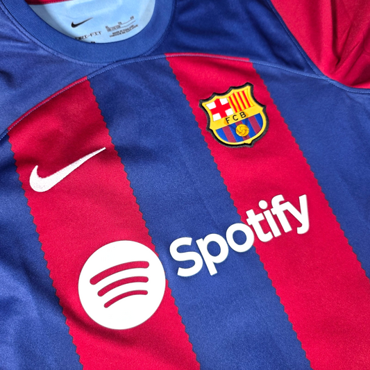 Excellent Condition FC Barcelona home shirt from the 2023 to 2024 season by Nike, featuring the classic blue and red vertical stripe design with Spotify sponsor and embroidered club crest. A modern Barca home jersey ideal for match days, training or everyday wear. ✔ Excellent Condition ✔ Size: 13 to...