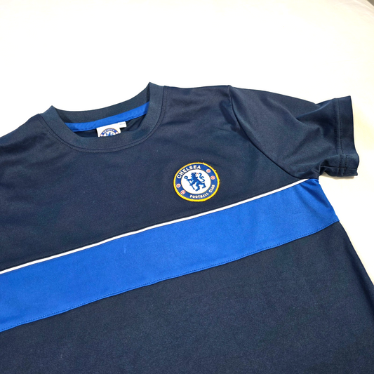 Official Chelsea football T-shirt in classic blue, featuring the Chelsea crest and club branding. A comfortable and versatile top, ideal for matchdays, training or everyday casual wear.