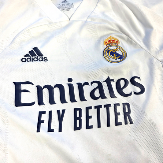 Good Condition – couple of small marksReal Madrid 2020/21 home football shirt by adidas, featuring the classic white design with pink detailing, Emirates Fly Better sponsor and club crest. A stylish and iconic kit, perfect for matchdays, training or casual wear. ✔ Good Condition – couple of small marks ✔...
