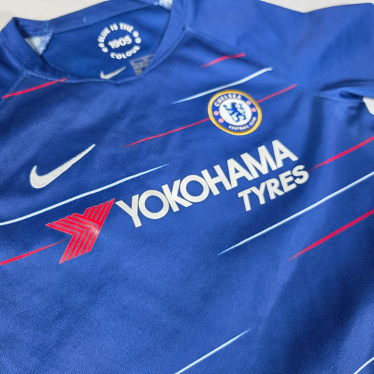 Great ConditionOfficial Chelsea FC 2018/19 home shirt by Nike featuring the Yokohama Tyres sponsor and classic royal blue design. Perfect for young fans or collectors.