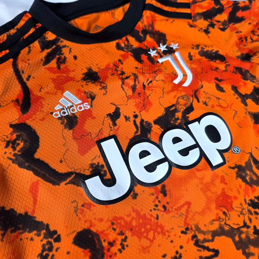 Juventus third shirt by Adidas from the 2020 to 2021 season featuring the bold orange graphic design with embroidered crest and Jeep sponsor. Made with breathable AEROREADY fabric, ideal for match days, training or everyday wear.