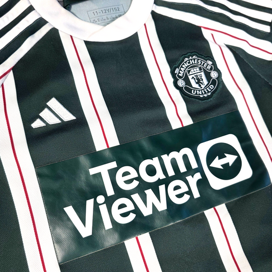 Excellent ConditionOfficial adidas Manchester United Away Shirt for the 2023/24 season featuring the TeamViewer sponsor and green, white, and maroon striped design. Made with AEROREADY fabric for lightweight comfort and breathability.